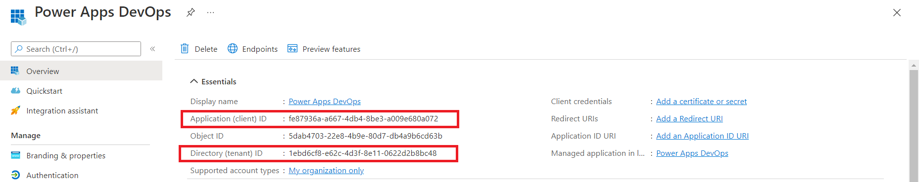 Note down the Application ID and tenant ID.
