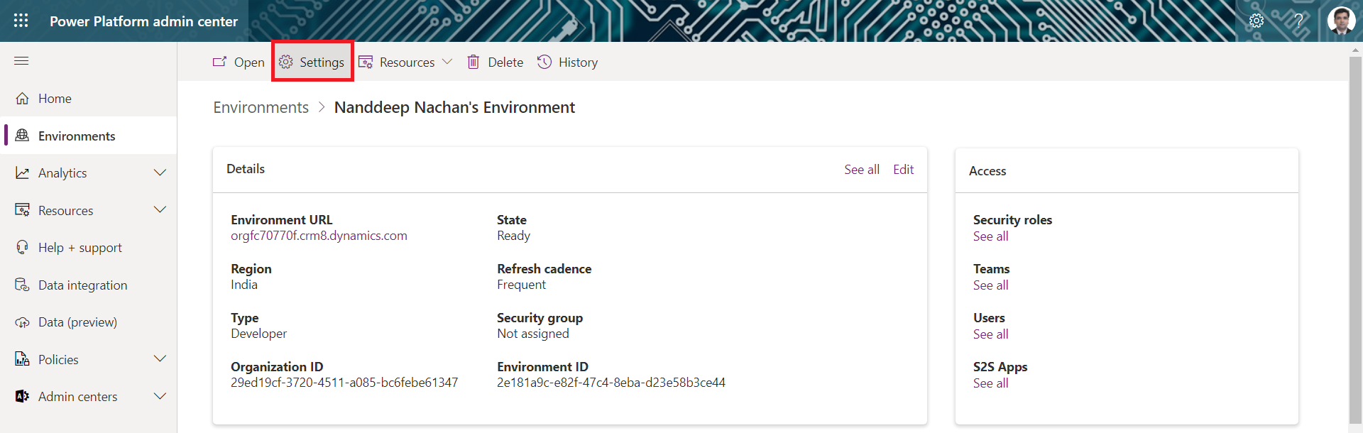 - Open Power Platform Admin center.