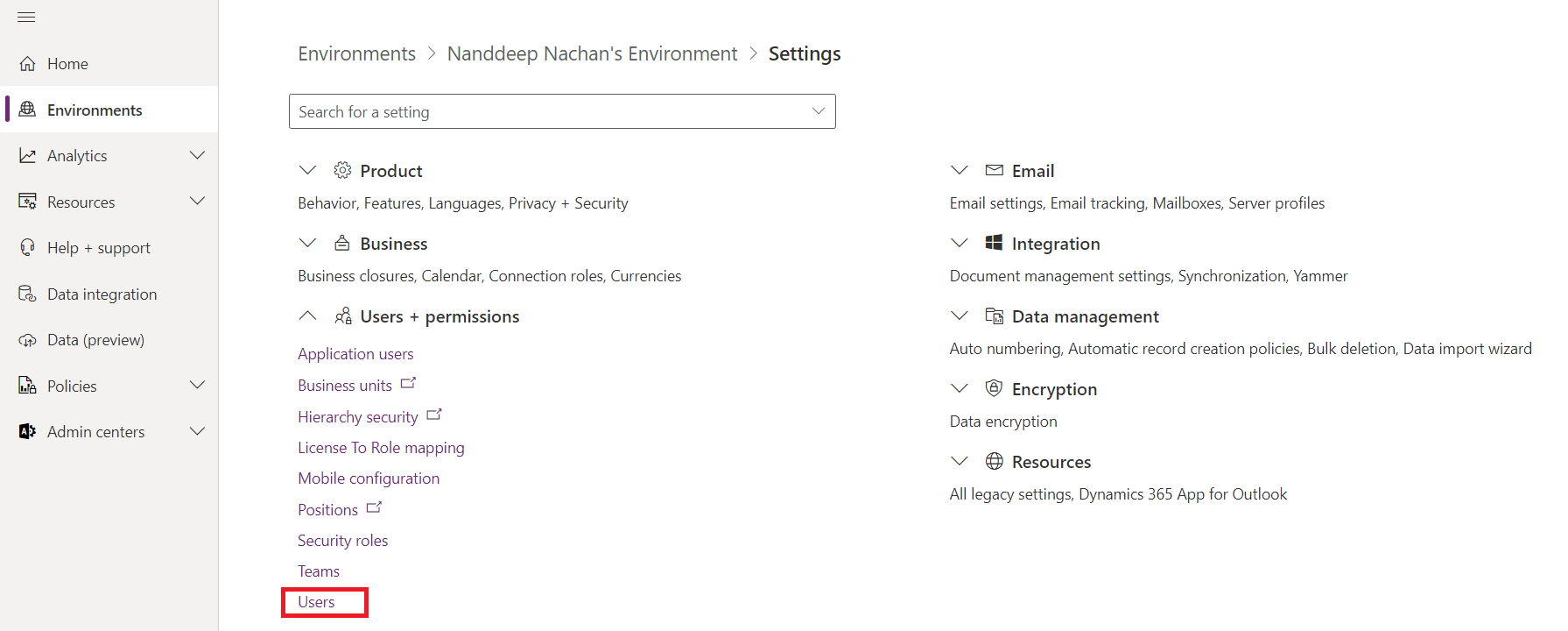 - Navigate to your environment.