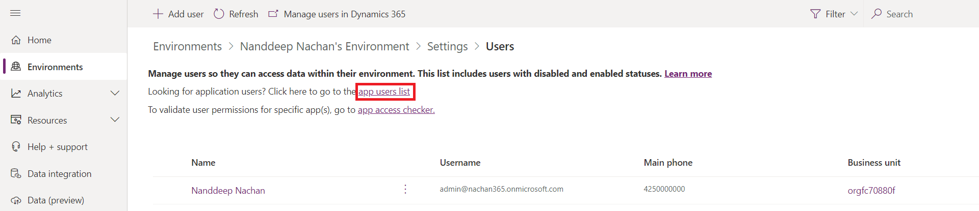 Click the app users list.