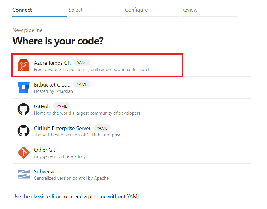 Select Azure Repos Git.