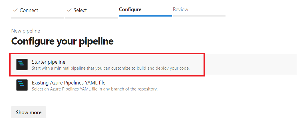 - Select Starter pipeline.