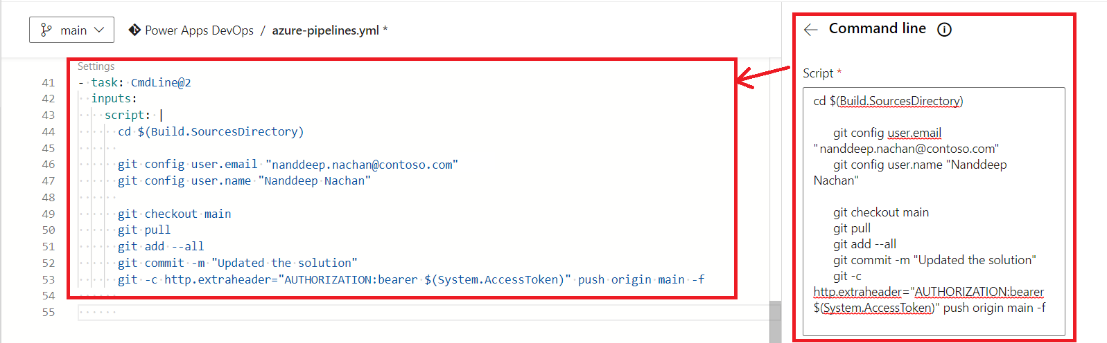git -c http.extraheader="AUTHORIZATION: bearer $(System.AccessToken)" push --set-upstream origin $exportBranchName