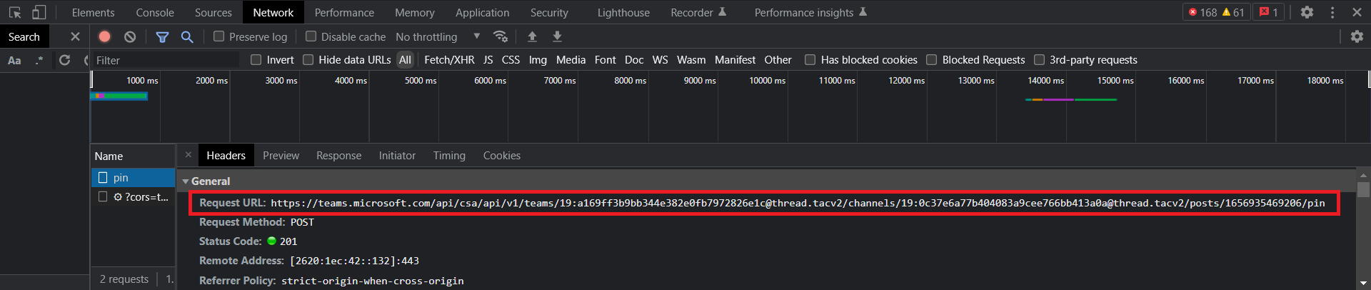 Let us analyze what happens in the background when you pin a message in MS Teams.