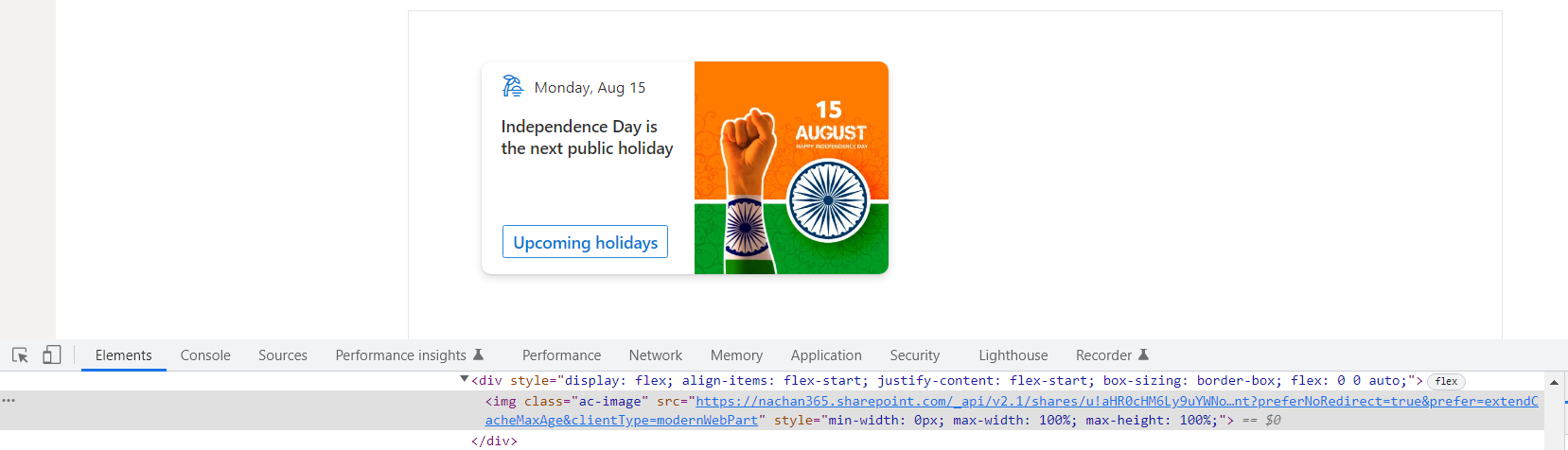 Image Helper API helps to generate an optimized URL to the images stored in SharePoint. This feature is generally available in SharePoint Framework v1.15. It was introduced in the earlier release (SPFx v1.14) as a developer preview feature.