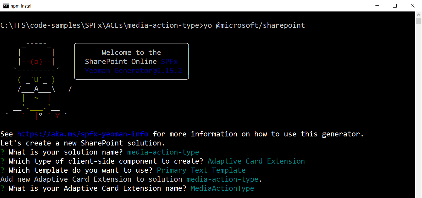 Let us start by scaffolding the SPFx ACE solution to get familiar with new media action type.