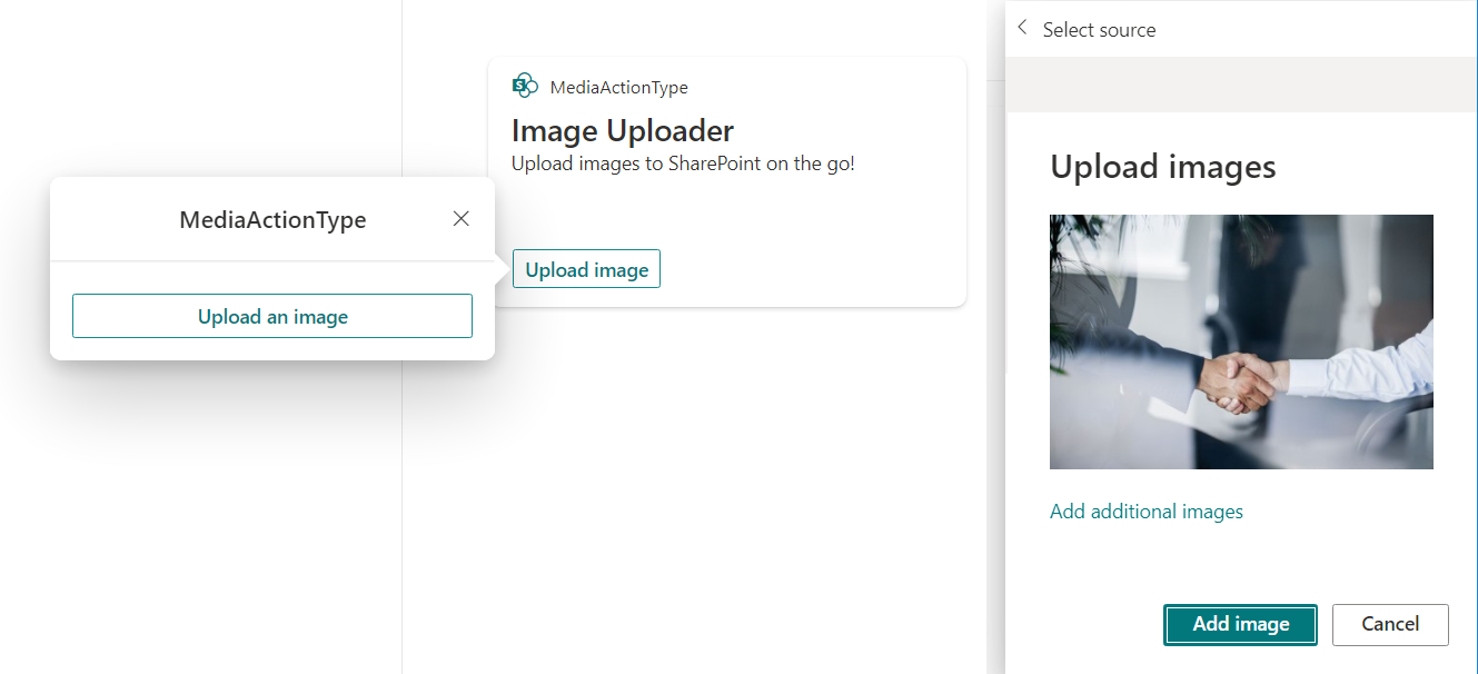 The media action type is useful in Adaptive Card Extensions for the frontline workers to upload the images on the go.