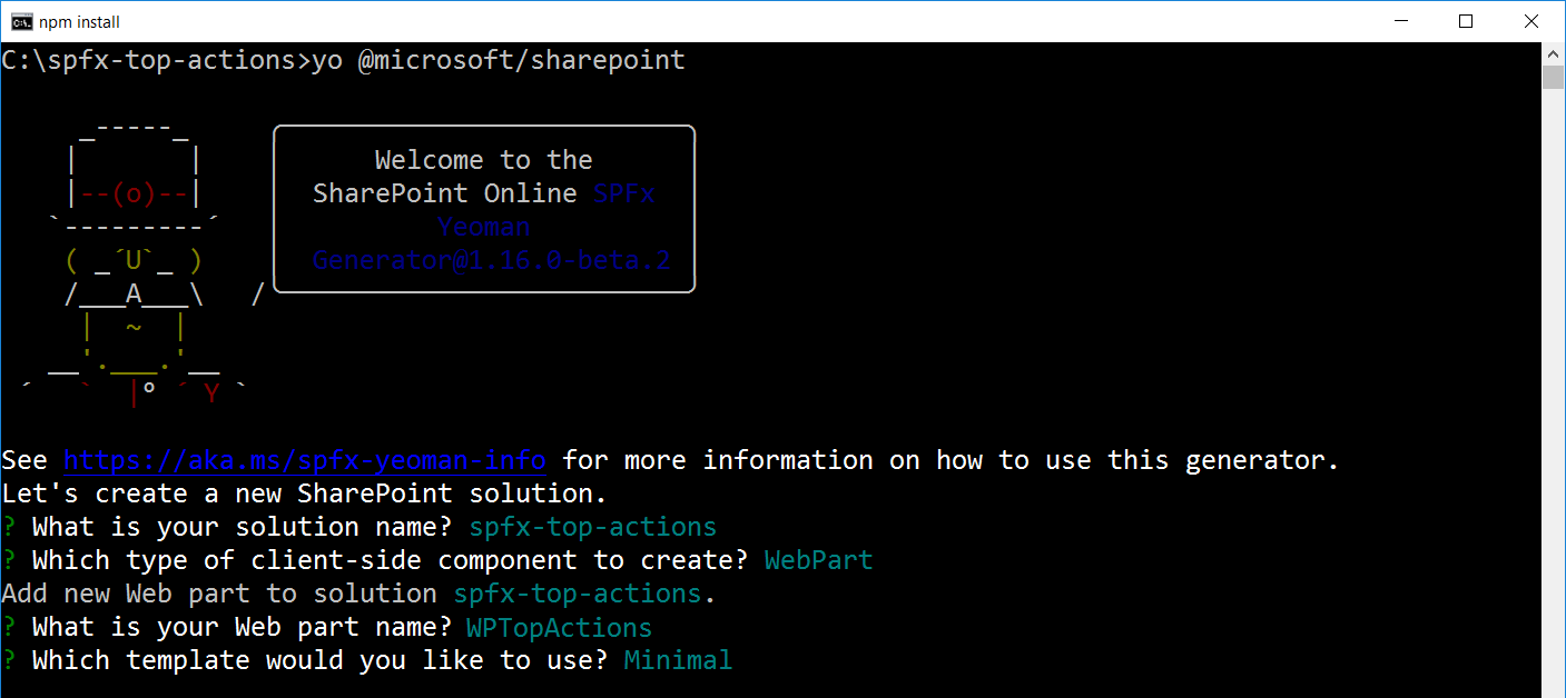 Let us start by scaffolding the SPFx web part solution to get familiar with the top actions.