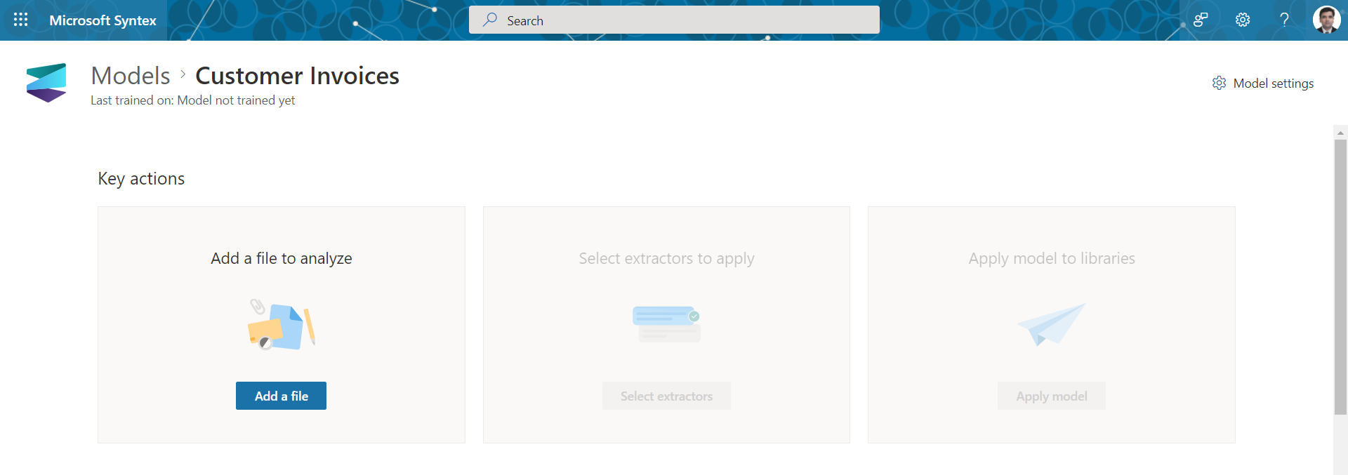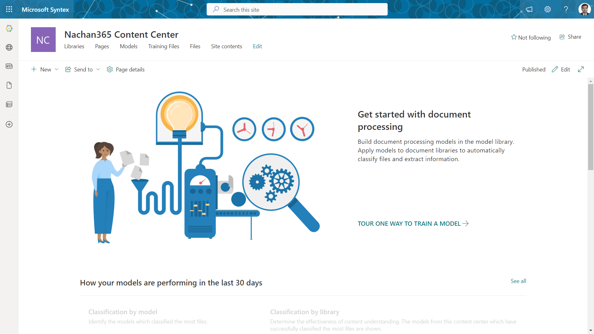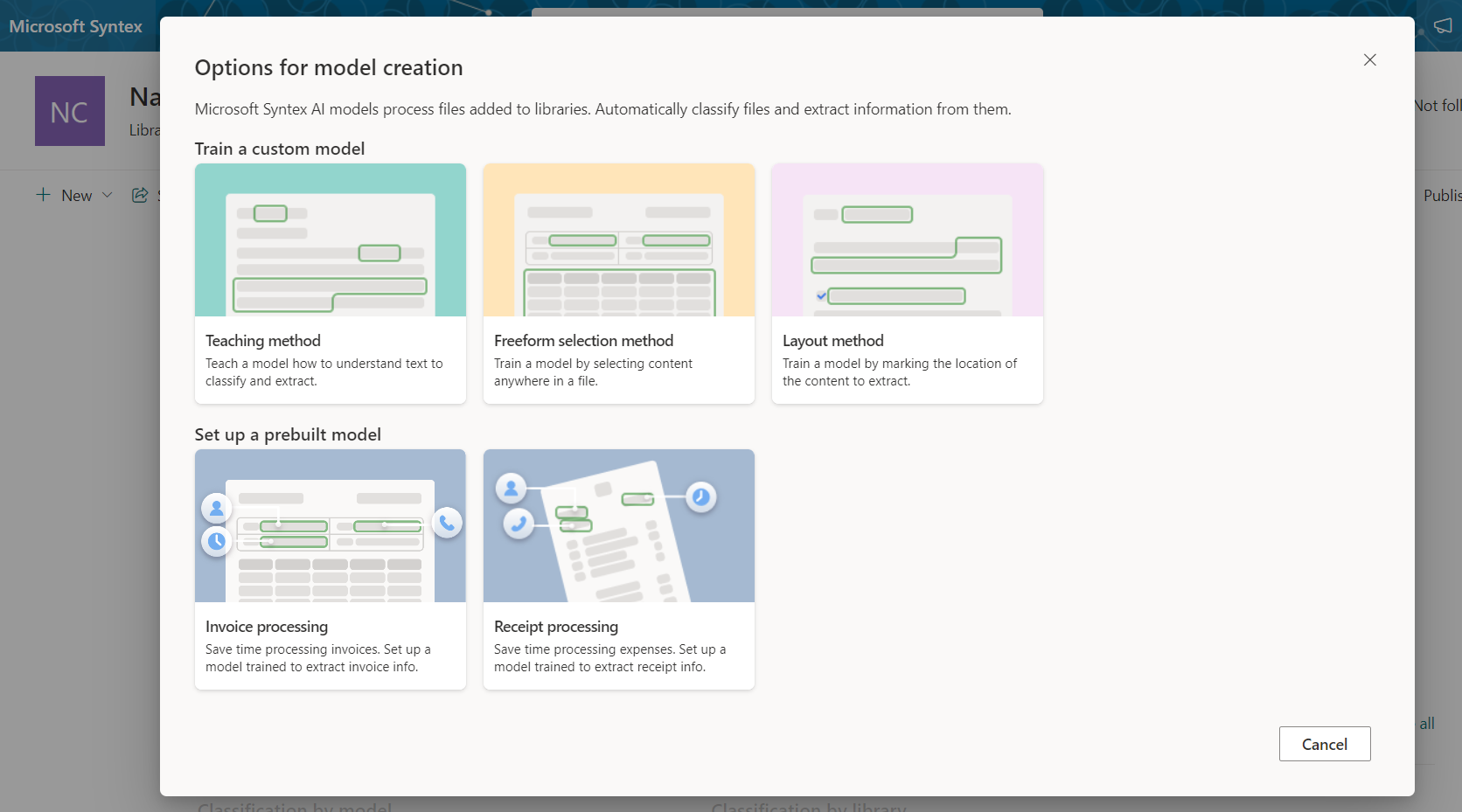 Microsoft Syntex works on the concept of models to identify and classify the documents. It has prebuilt models, as well you can create your custom model based on type or structure of files as well the information you want to extract.