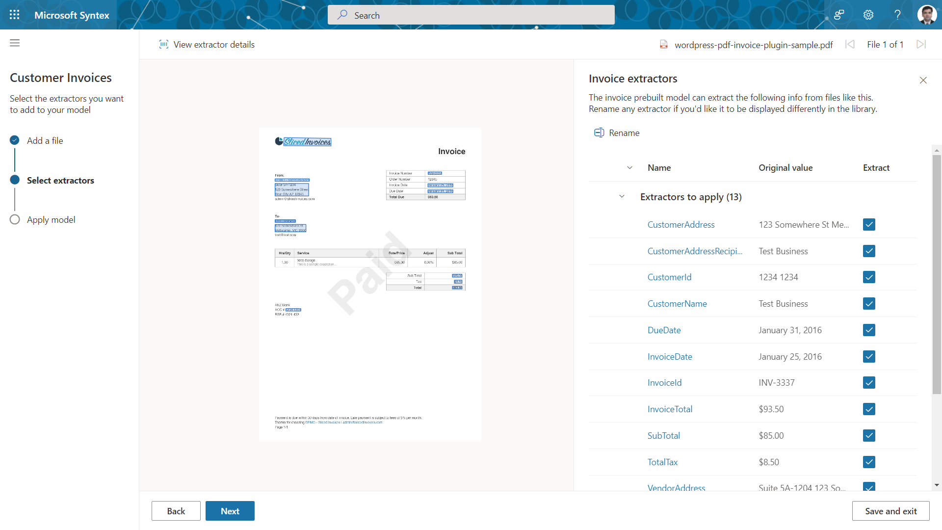 In the document library, select the document(s), click Classify and extract to let Microsoft Syntex to extract out the information from your documents.