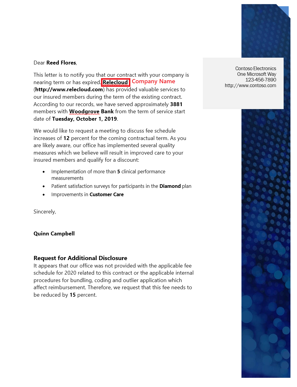 Explanation helps to recognize the document. For e.g., Contract renewal document will always contain a text Request for additional disclosure.