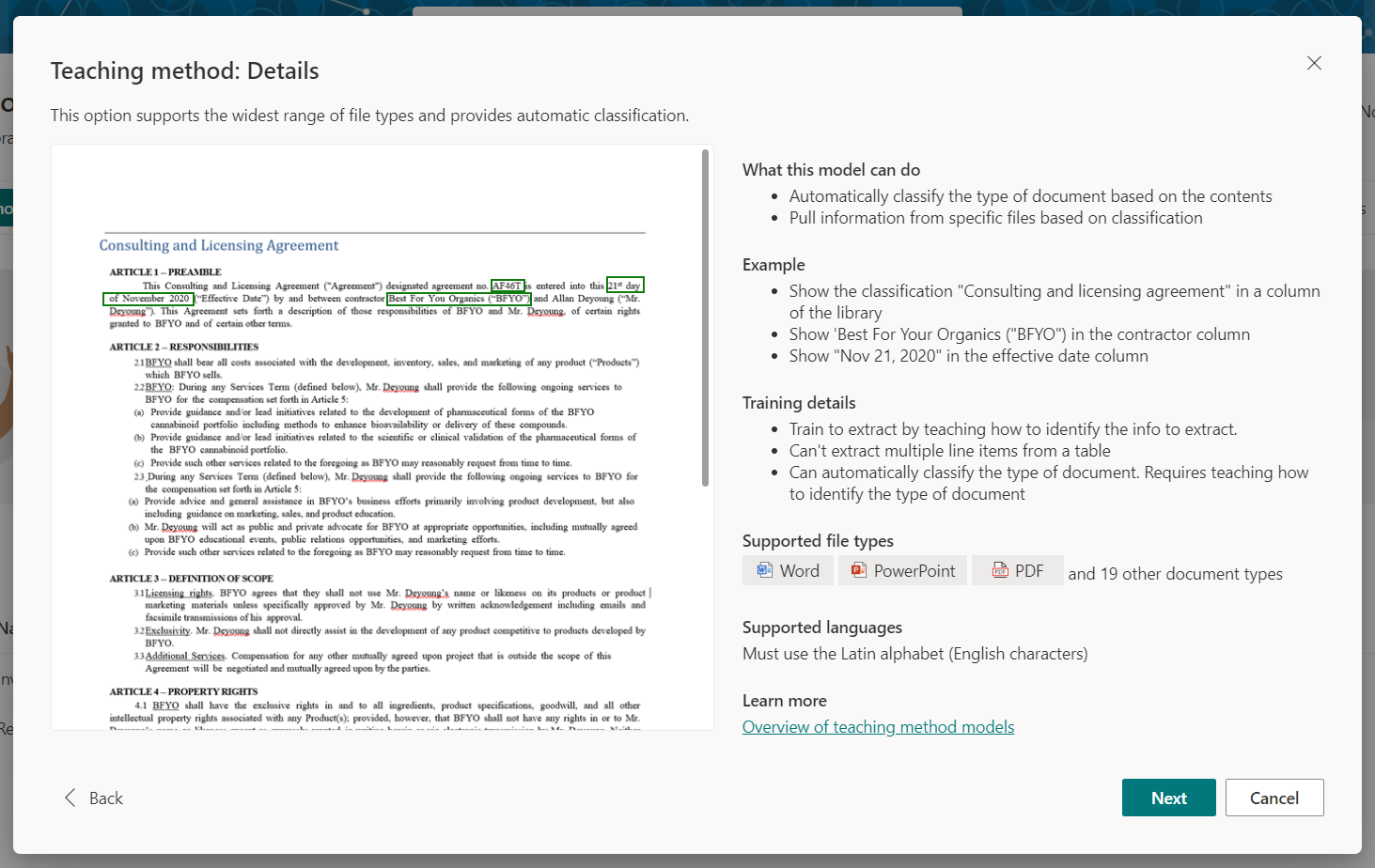 - Overview of model types in Microsoft Syntex