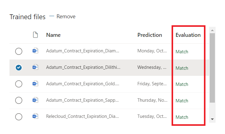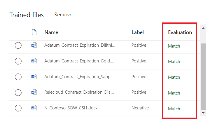 - Positive example: Contains strings and information that will always be in this type of document. Upload at least five positive examples.