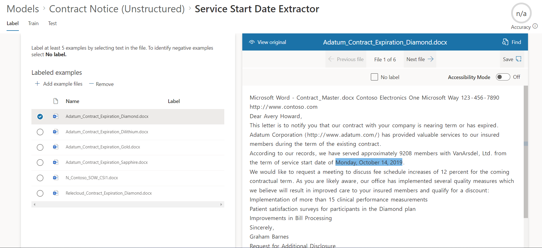 As a next step, we need to label the entity to extract. From the viewer, select the data to extract.