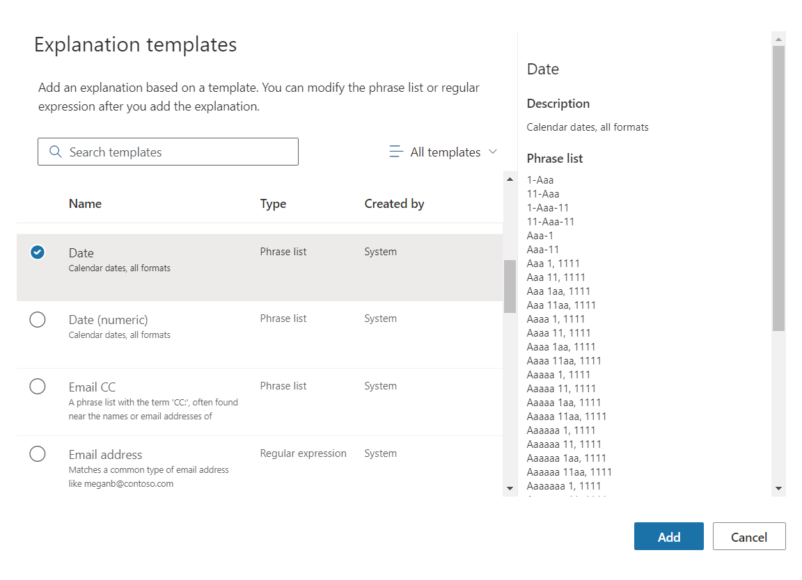 - Select Explanation type as Phrase list.