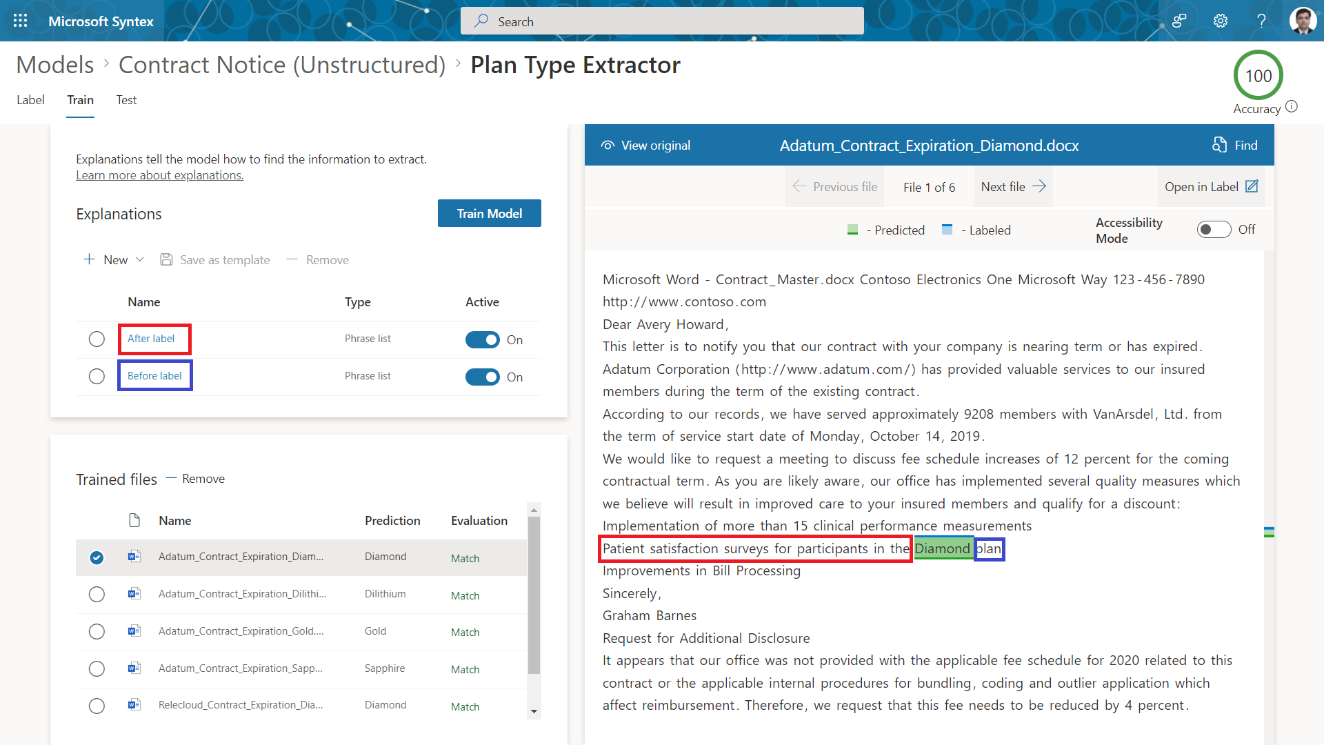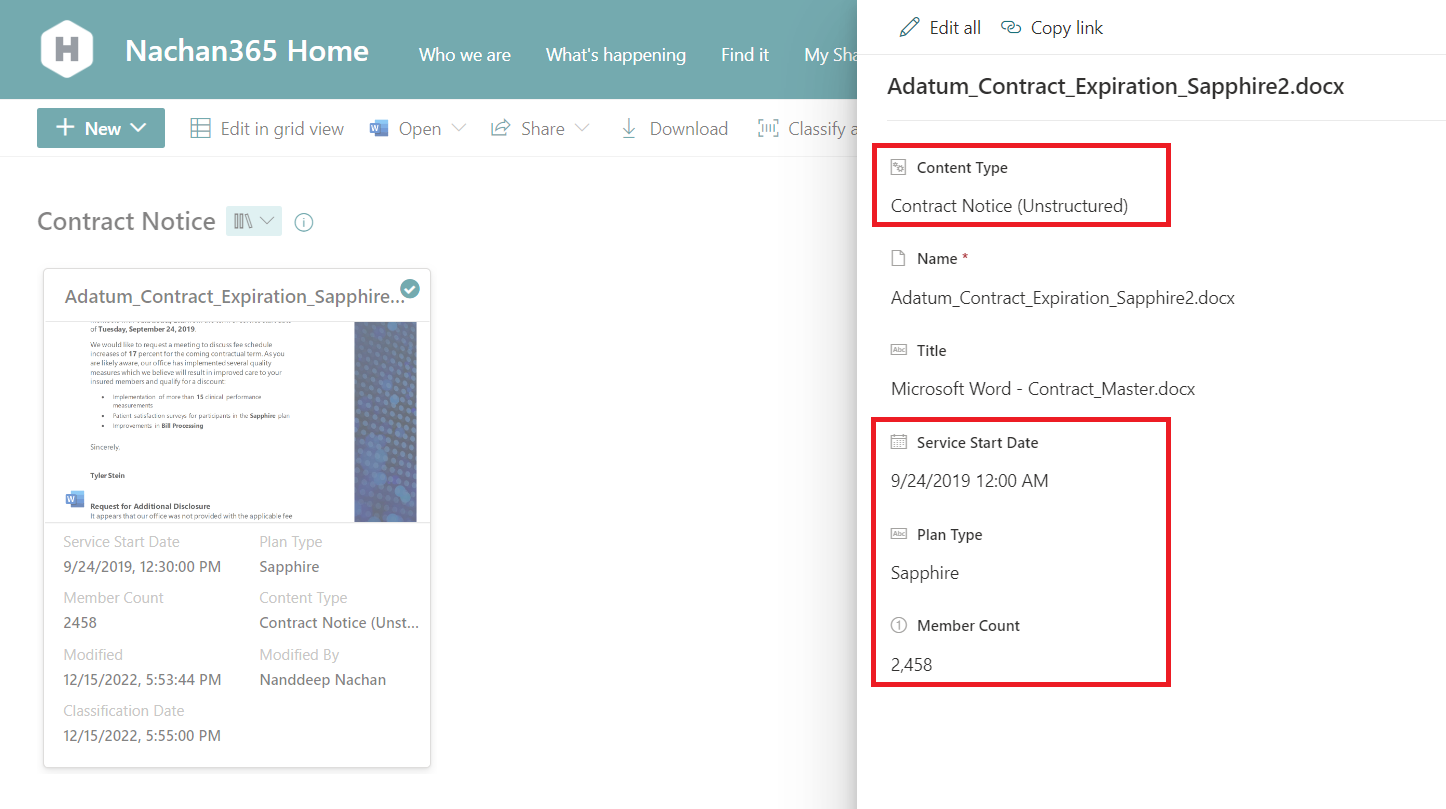 Once the documents are uploaded to the designated document library, the custom model will be applied on it to extract the information.