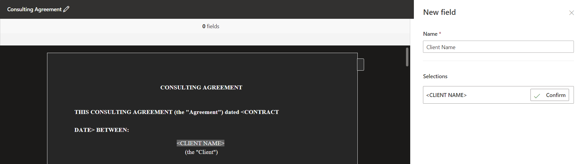 After having a modern template, we need to define multiple fields that can be mapped at multiple occurrences in the template. E.g., <CLIENT NAME> appears at multiple places in the document (aka modern template).
