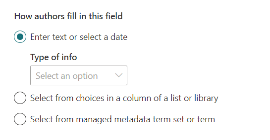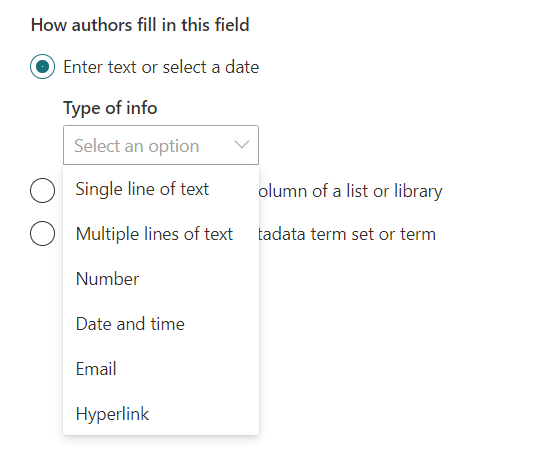 If you select the authors to enter text or select a date (i.e., option 1), you will get the below options to configure.
