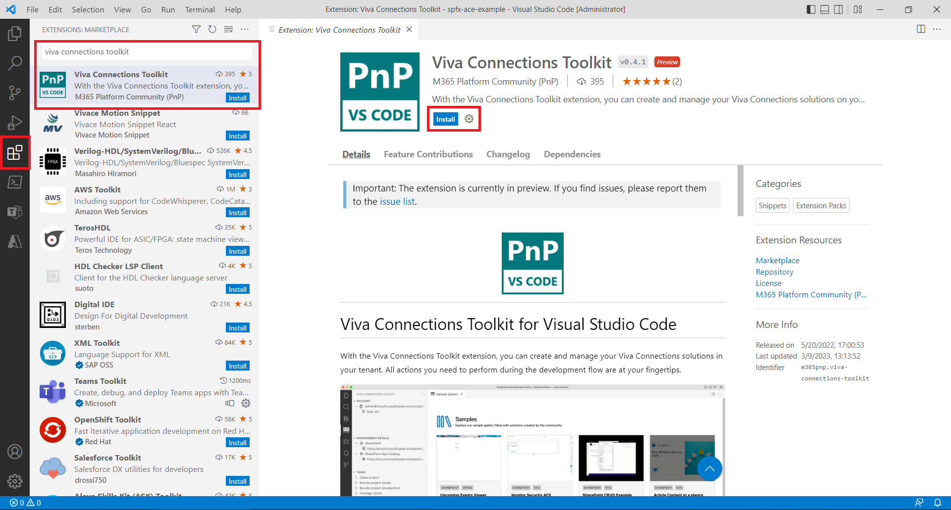 Viva Connections Toolkit extension is now available in preview in Visual Studio Code to make developers’ life easy to manage the SharePoint Framework (SPFx) solutions.