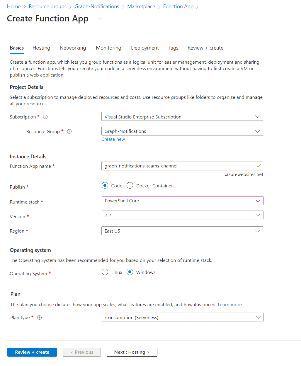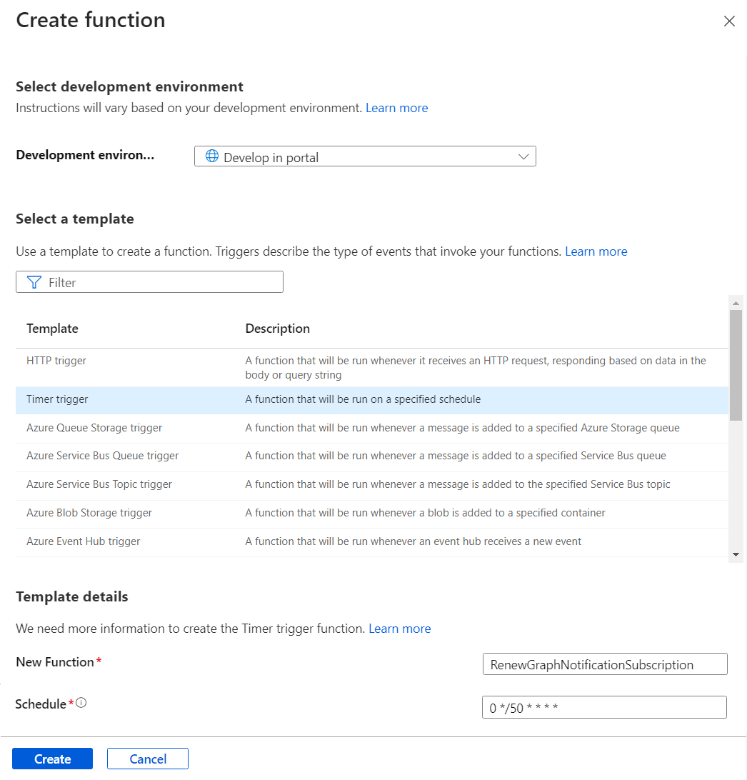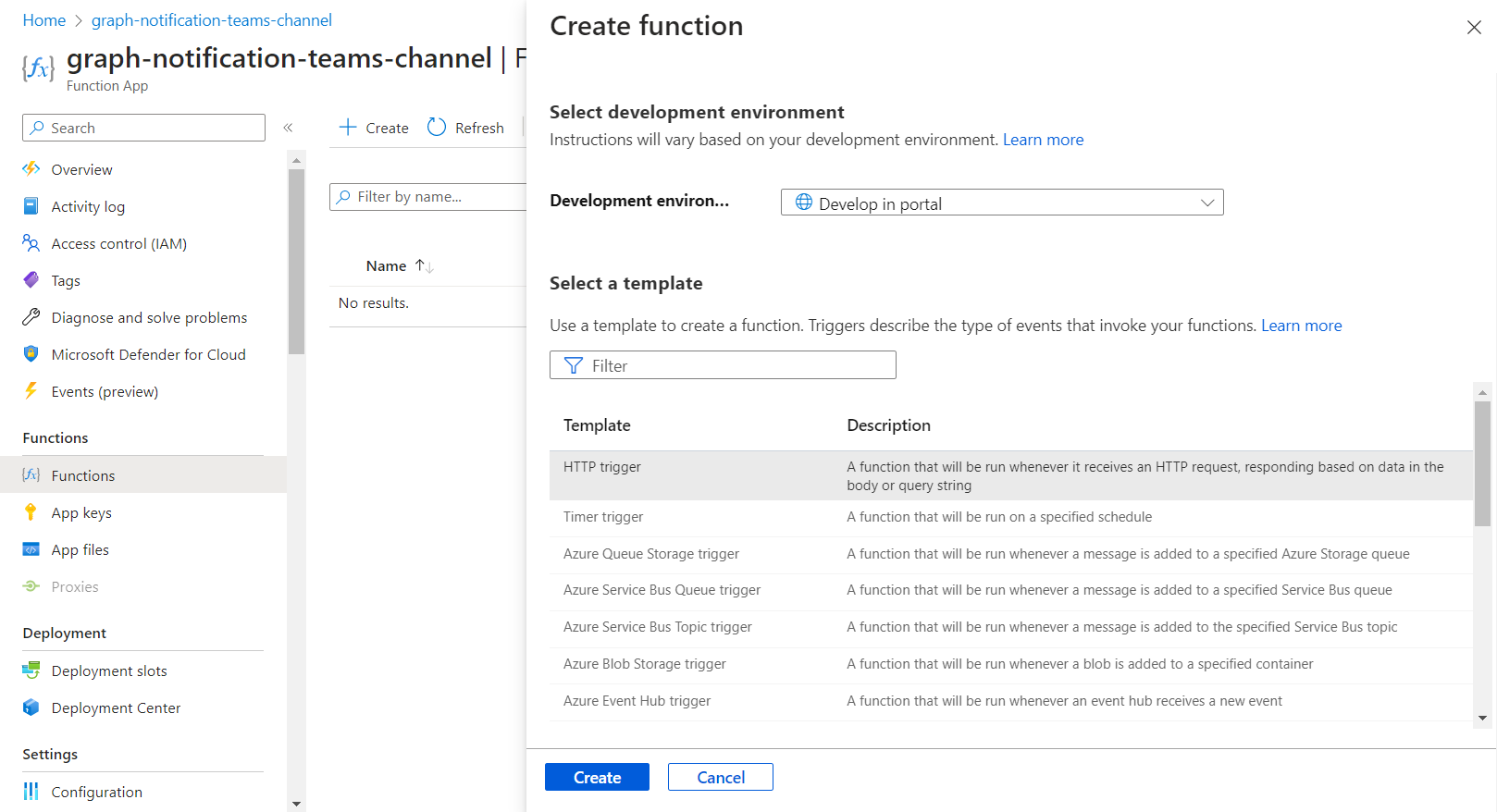 Create a function app to handle the Graph notifications.