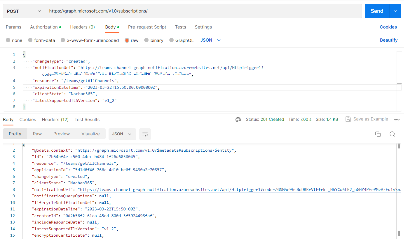 $newTeamsChannelNotificationSubscription = Invoke-RestMethod -Method Post `