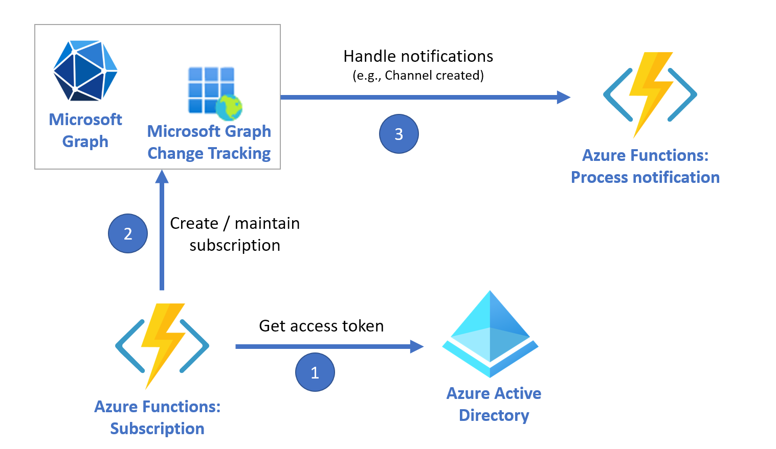 - When a Microsoft Graph change notification is processed, the message is handled by Azure Function.