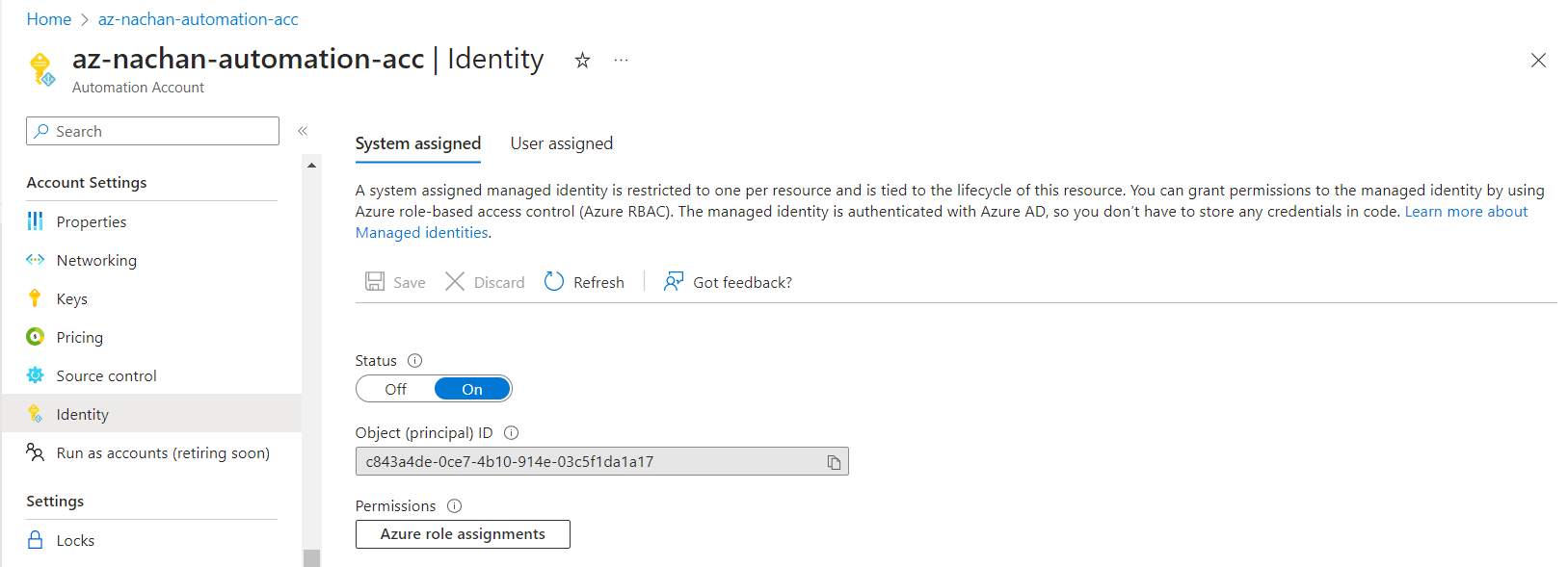 Follow the below steps to enable the managed identity on the Azure Automation account: