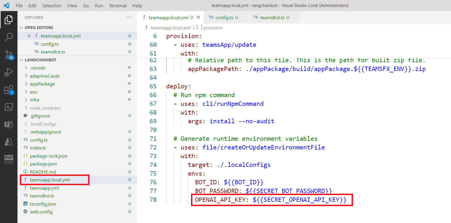 Update the runtime environment variables section in the teamsapp.local.yml file as shown below: