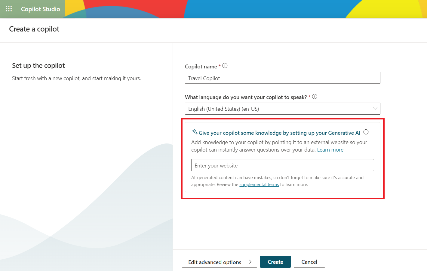 Create a Copilot in the Microsoft Copilot Studio