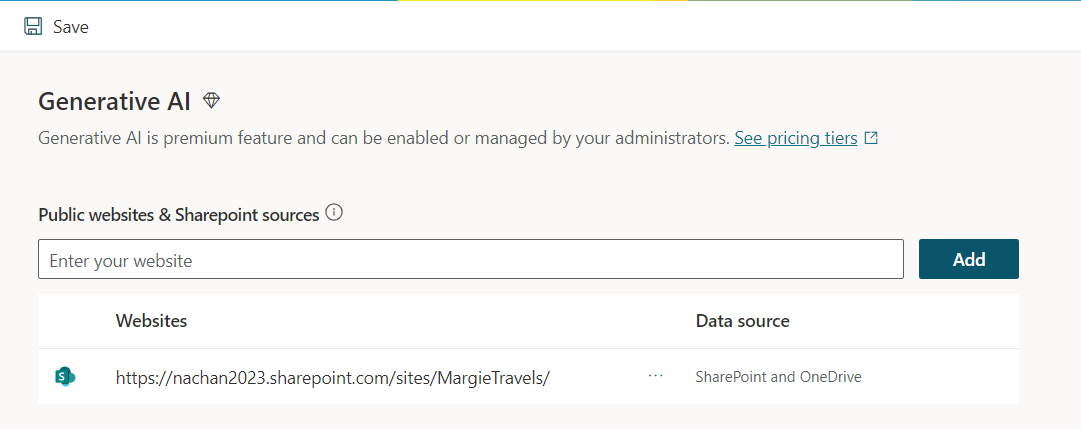 Set SharePoint Site as source for Generative AI