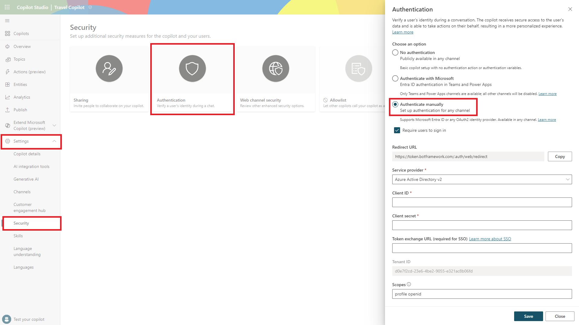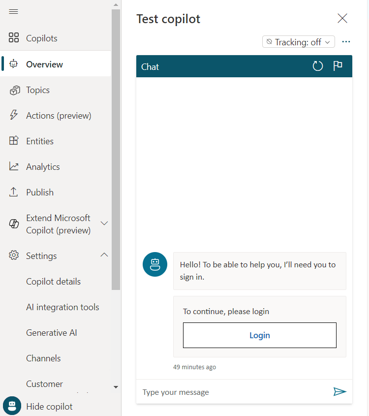 - No Authentication: When your copilot doesn’t require your users to sign in when interacting with the copilot.
