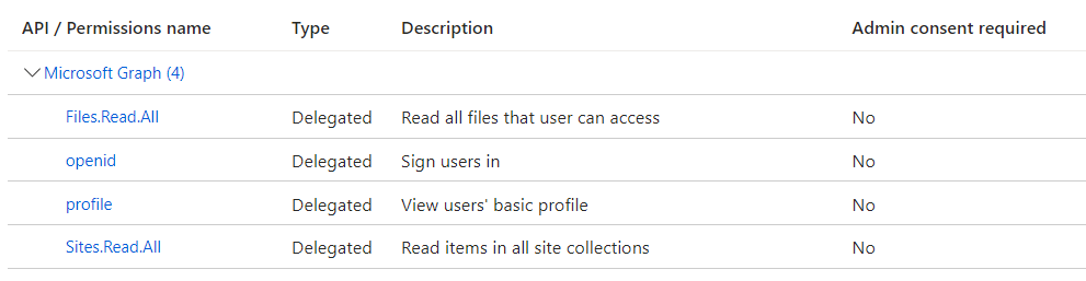 Add the below Graph API permissions as delegated.