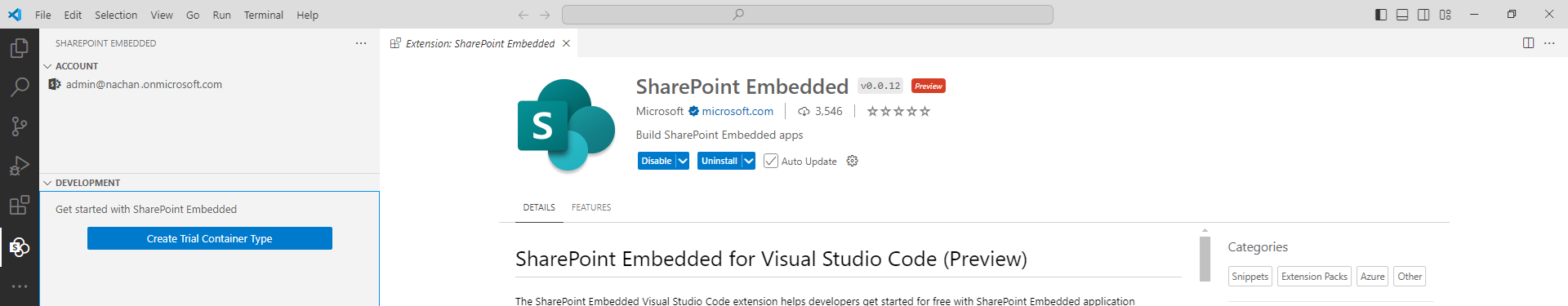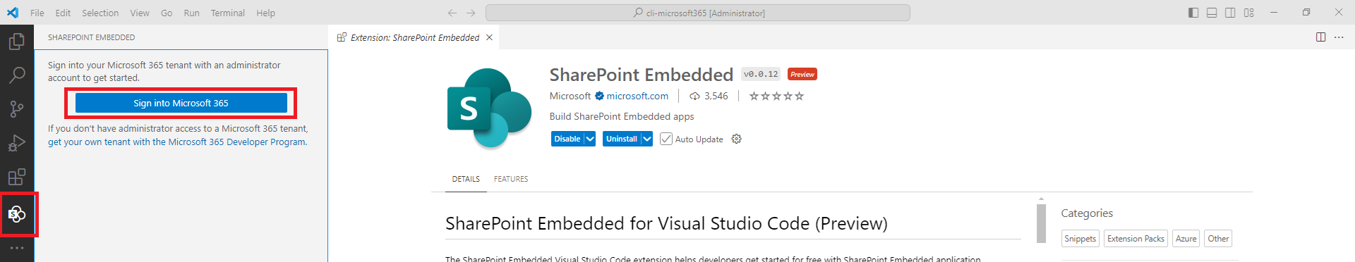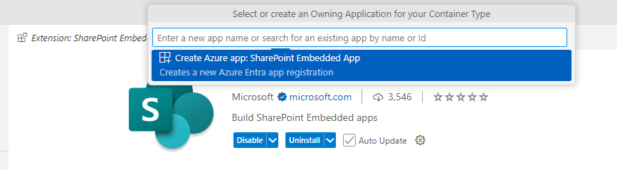 Search and install the extension - SharePoint Embedded.