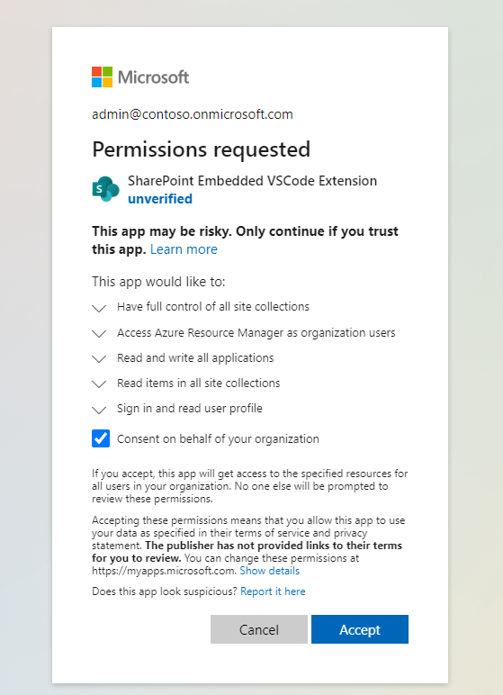 Authenticate with SharePoint admin and provide the consent.