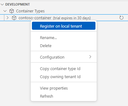 Right click on the container type and select Register on local tenant.
