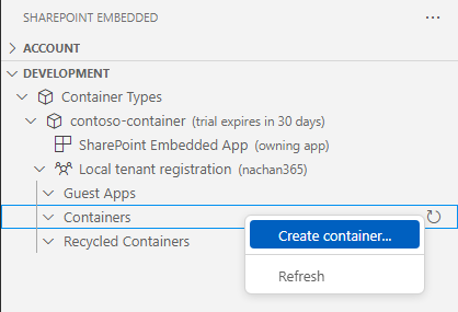 - In the VS Code, from left menu, click SharePoint Embedded.