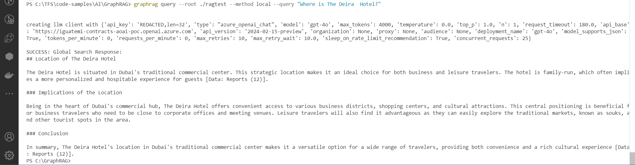 graphrag query --root ./ragtest --method local --query "What are the hotel recommendations in Dubai?"