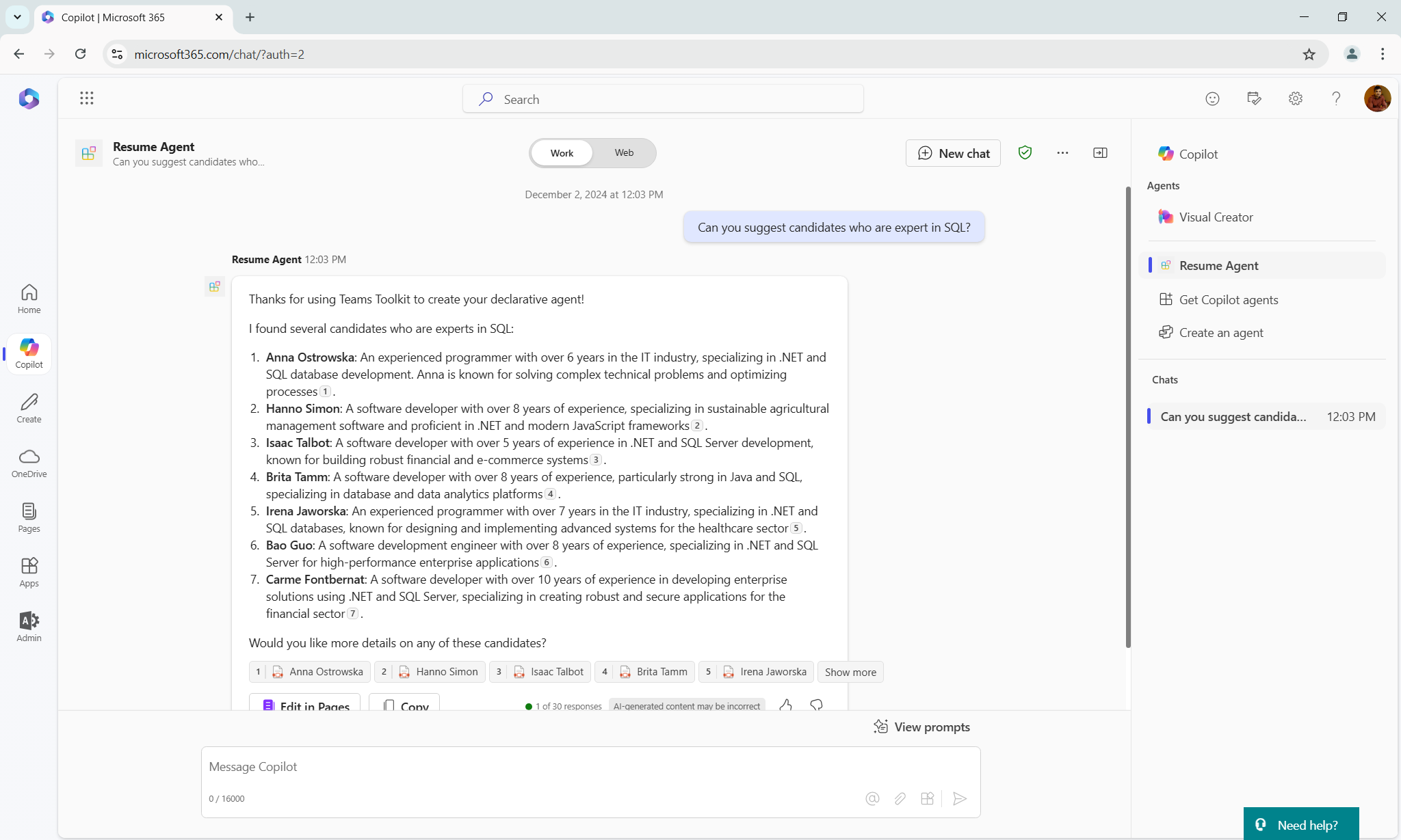 With Copilot, recruiters can quickly find candidates that meet specific job requirements, overcoming language barriers and saving significant time. The tool delivers structured insights, such as ranked candidate lists with key details, directly within Microsoft Teams, enhancing decision-making and accelerating the hiring process.