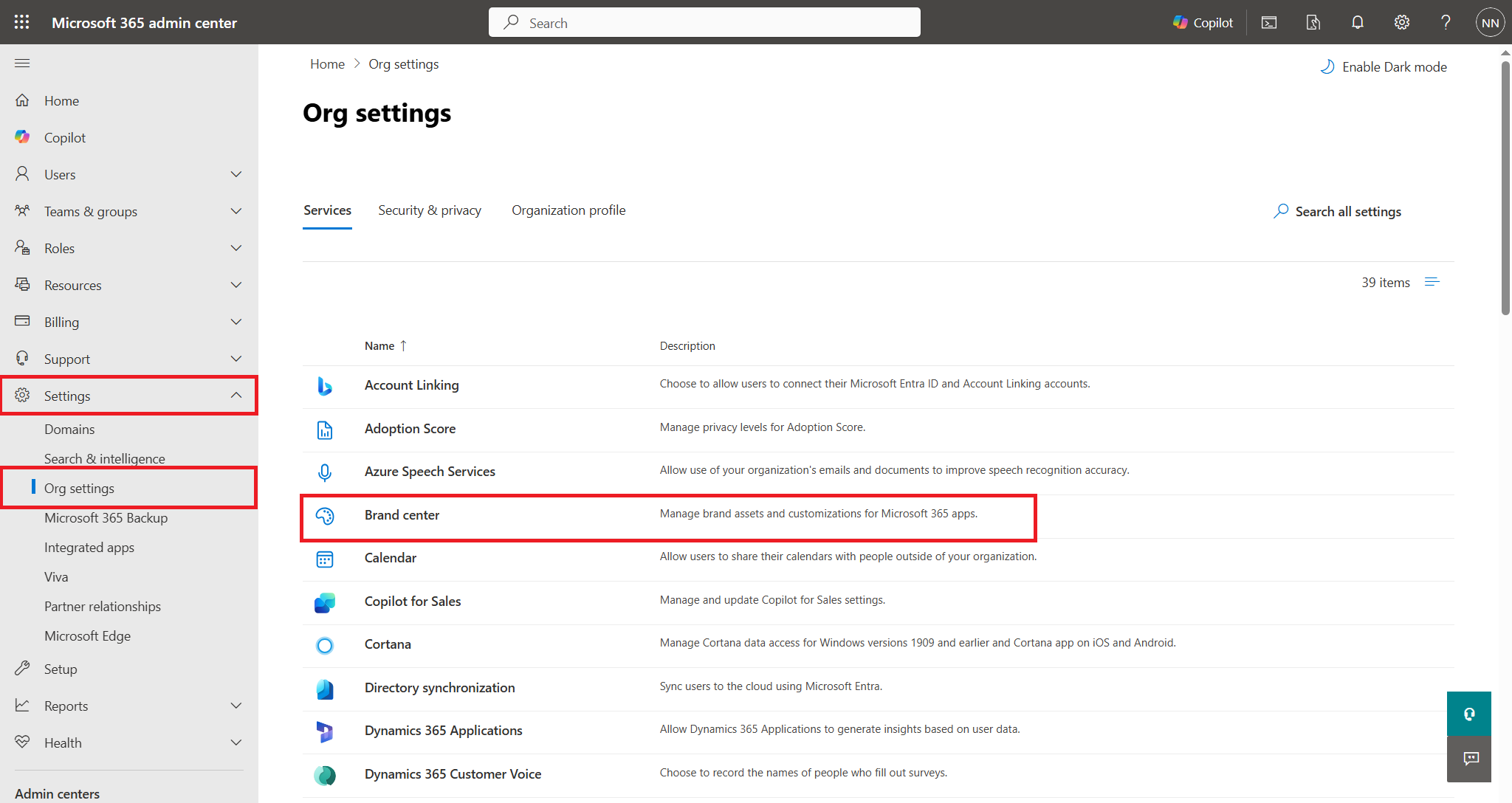 Step 1: Activate “Brand center” in Microsoft 365 admin center